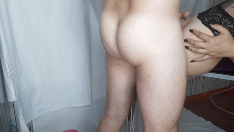 Hot wife put on her new dress, gorgeous stockings and seduced her new friend into cunnilingus and passionate sex in the kitchen