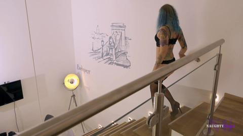 Her lover arrives and Anette cuts straight to the point, when she drops on her knees before him and starts caressing his cock with her tongue. After some arousing, he turns her around and he licks her pussy then enters her and pumps into her for quite some time. When she finishes, he pulls out and comes on her tongue.