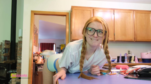 I'm doing work in the kitchen when I get really horny! I immediately start humping the corner of my counter in as many ways as I can until I cum. I stay clothed the full time.