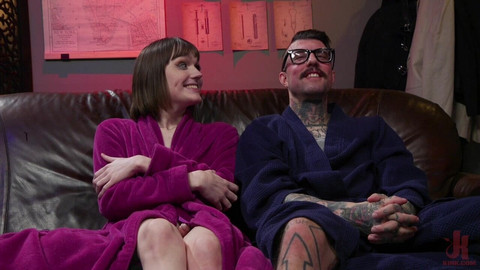 Eager student Claire Tenebrarum is out of her depth. Today she interviews infamous ex-priest H3ll4Sl00tz whose scandalous book caused an uproar among the clergy. She arrives and immediately finds herself at the mercy of this intimidating man who calls her out on arriving ill-prepared for the interview. H3ll4Sl00tz decides to help out this little slut and gives her a hands-on information session. He has her read from his book as he spanks, paddles, and flogs her ass. Claire whimpers as the strokes from H3ll4Sl00tz turn her ass bright red. H3ll4Sl00tz puts her on her knees and inspects her mouth. Claire has never been so turned on in her life as H3ll4Sl00tz's gloved fingers feel the inside of her mouth. Next, Claire is bound, blindfolded and gagged. H3ll4Sl00tz runs his hands along her body and spits in her mouth eliciting moans from his newest disciple. He cuts off her panties and strokes her cock until is a whimpering mess eager to cum. Afterward Claire finds herself on her knees befor