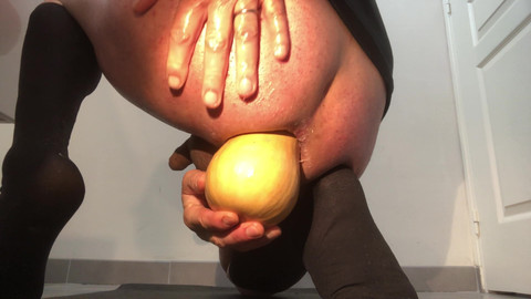 he is seized to take vegetables and a big bottle to widen his anus in his bathroom. but he can't help but have his orgasm on camera during a voluminous insertion. sperm lies on the ground.