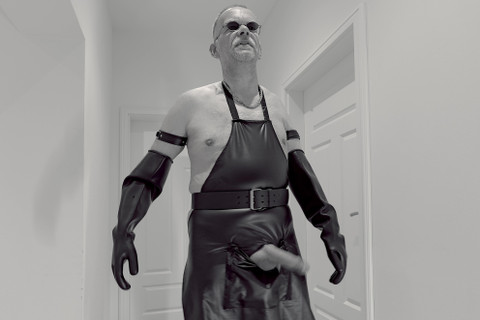 GERMANE_XL in hot Rubber Apron shows his Big Cock. Huge Cum Shots.