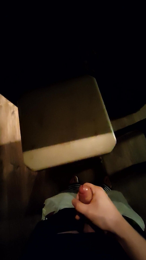 Small cock gets a good handjob on a bar stool and cums with a condom. Watch and jerk off with me. Look forward to new videos soon!