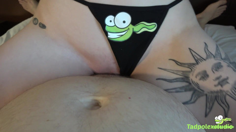 Sunny Daze sucks and fucks Tad Pole, riding him before Tad Pole lubes up and fingers her ass and fucking her more before he fills this lovely girl's pussy with a creampie.