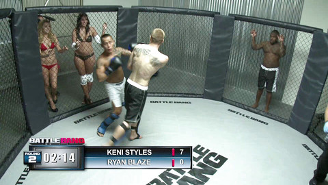 Real cage fights for poontang. Mixed martial arts series in which male performers compete in the cage no stuntmen here for a carnal prize. All full-contact bouts are two three-minute rounds with a round each for grappling and kickboxing. Winner get's The Prize, loser takes The Punishment. Two more action packed bouts & hardcore XXX action in this Big Budget Reality Based Series. Battle Bang is assured to bring a whole new fan base to the MMA community. Scene 2 features KELLY DIVINE watch the MMA fight to see who gets to fuckher. All we can say it is Fu'kin Good action all round.