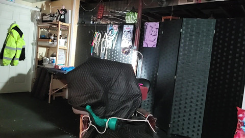 Eddie in underwear, playing with a big dildo, being a pig.
