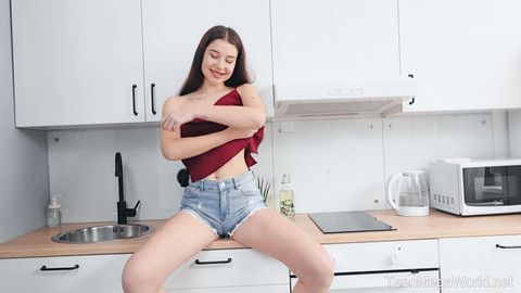 Beautiful Jolie Butt just bought a sexy lingerie set. Sure, she wears it every day because she loves feeling silk cloth caressing her gentle skin, but, she adores caressing her sweet pussy right through her new panties even more. So, she takes off her tiny shorts, turns around to show the beauty of her butt covered with sexy panties and then, finally, teases her shaved clit and slit with her talented fingers. When her pussy gets wet through, she gets rid of her lingerie and stuffs that hot, pulsating hole with a long sex toy.