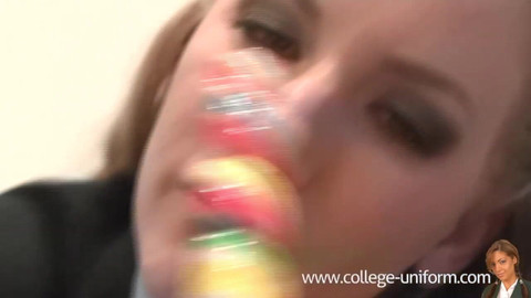 Naughty student Dani Maye is back again sucking on the biggest lolly she has ever as the college slut as always she licks sucks and deep throats, teasing you, leaving you with a rock hard cock to wank with. Danielle Maye XXX