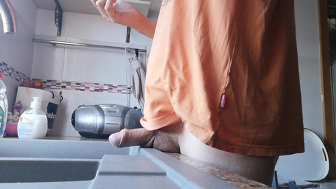 I just needed to empty my balls so pulled out my cock real quickly to jerk off. I shot my load into the kitchen sink not to make too much mess.