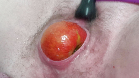 My clit went hot on my massage toy and I am squirting, birthing an apple AND an orange ...