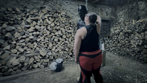 My filthy slave is trapped in my wood room, bound and stripped of all control. Arms wrenched into a shoulder restraint, hooded and locked in chastity. His pathetic cock feeds directly into his gag – a fitting punishment for his twisted perversions. But disobedience demands escalation. I force a freezing enema into him, then lock him into humiliating plastic pants to stew in his shame. This is relentless domination.