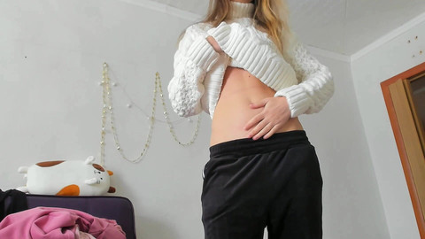 So cold here! Brrrr! and i found great sweaters and get wormed in. Ican't choose! I'm raiser my hands up and show my perfect belly and tease you because i'm without a bra How i'm looking in sweaters? What you like most?