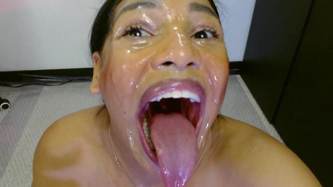 I collect saliva that I lick off the floor, destroying my makeup with saliva, nasty and dirty Latina woman