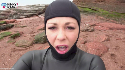 After a warm swim, I stroll back to the car in my wetsuit, savoring the sand underfoot and teasing myself with thoughts of peeling it off. While poking through shells, I spot something strange—half-buried in the sand. It looks gross… but it’s a tiny man-shaped figurine. Perfect. I kneel down, taunting it like it’s alive, giggling about what my giant body could do. Maybe I’ll bite its head… or squash it under my sandy toes. I lick it just to tease, but ew—it tastes awful. Still, the fantasy builds. I slide on my fins, towering over him, threatening to stomp like a true wetsuit-clad giantess. A delicious mix of size play, domination, and sandy wetsuit fun.