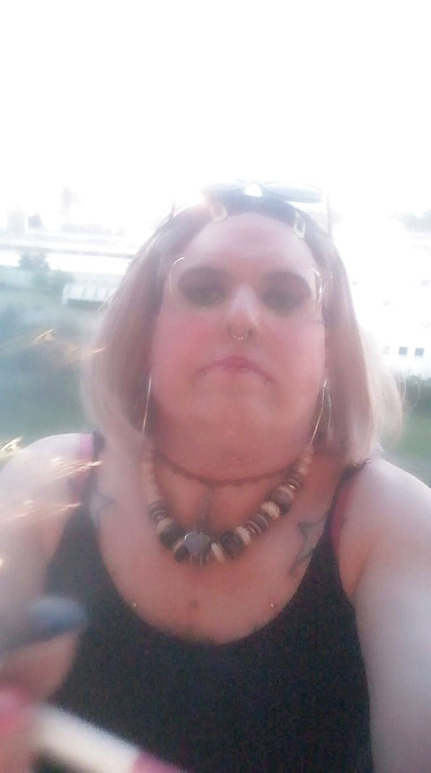 Blonde TS Stefanie smoking a cigarette 2...