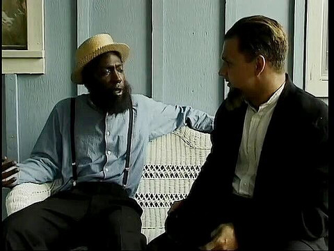 Black and white dudes get a blowjob from Amish chick and pound her pussy and ass on the sofa and cum in her mouth.