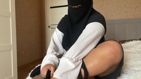 Arab stepmom in pantyhose gives instructions to stepson