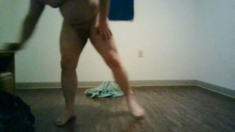Me being naked while doing splits stretching exercises to do the splits.