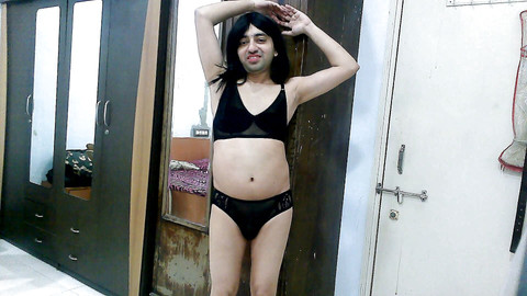 Sexy sissy crossdresser femboy Sweet Lollipop in sexy black lingerie with a sexy back. Removes lingerie, shows her gloryhole, masturbation with her big dick, shows her nipples and sexy nude body.