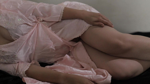 BEAUTIFUL GIRL WEARING SEXY SATIN DRESS SHOWING OFF PUSSY