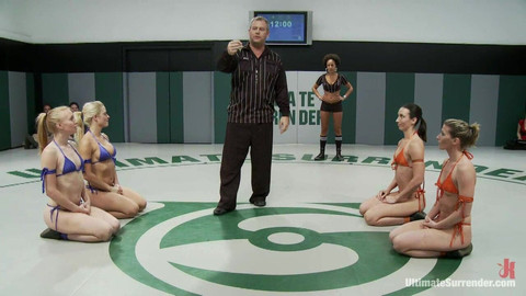 Welcome to Tag Team Tuesday. This is round 1 of 4 of the December match up between The Dragons and the Goddesses. This is the Semi-Final match. It's all on the line. The winner of this match goes to the Live Championship match up being shot and shown live on January 22nd. The winner of this match will face off against the undefeated Ninja's! Some great action and holds took place in Round One of this amazing match. Both teams trying to find the other's weakness, trying to maximize their tags. The live audience adds to the energy and all four girls are sweating and giving their all. Which team will take the lead into the second round, which team got finger fucked the hardest on the mat? Which team wants it more?