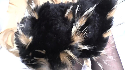 You may kneel before me today. Today I'm wearing a tight leather skirt, a silk blouse, and a beautiful fur scarf. I take off my fur scarf and show it to you. You may sniff my fur; it smells so wonderful. I rub the fur on your face; it feels fantastic. So soft and cuddly! You may masturbate and continue sniffing the fur. Finally, you may cum! You see everything in close-ups!