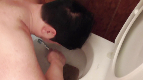Slave of Princess Nicole! Sadistic Princess Nicole subjects Bobby to another lesson than her slave. First, Bobby has to brush the totally dirty with the toothbrush. And right after the godlike mistress was . Princess Nicole is still sitting on the and has just finished . Then she calls Bobby and orders him to clean the with a toothbrush. Meanwhile she berates him all the time and tracks him with hammer hard kicks. After that, Bobby gets a golden shower from the mistress. The divine mistress stands over him and pisses not in the shell, but in his face and on his head. She orders him to wash his face and hair with the piss. After being humiliated in the ground, she finally leaves him alone with the order to clean the bathroom and the completely from the piss - with the toothbrush.