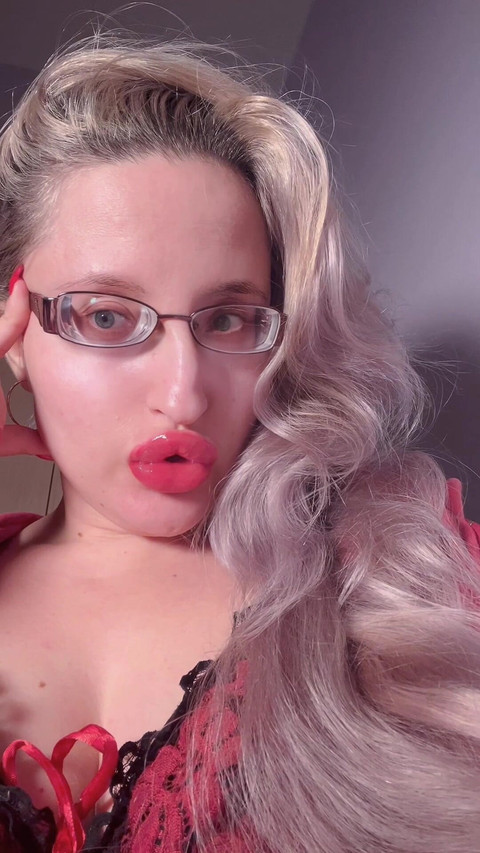 Bimbo red lipgloss captivated. Webcam Session talk with bimbo girl. Red lips and red lipgloss worship.