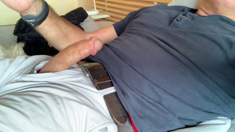 A rare jerk-off at home in the bed, nice relaxing masturbation session and cumming on my cumrag black pants - very up close of my super hard boner and jizz. Good jerk-off session. Nice orgasm.