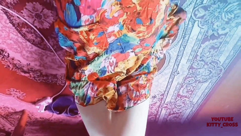Kitty_Cross: Милфа-блондинка в цветочном платье, горячая попка кроссдрессера Kitty-модель в любительском домашнем видео Фембой-блоггер