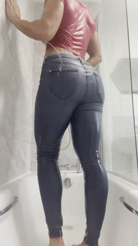 Мускулистая позирует кубиками, влажный бурный душ, мокрая футболка 09:06