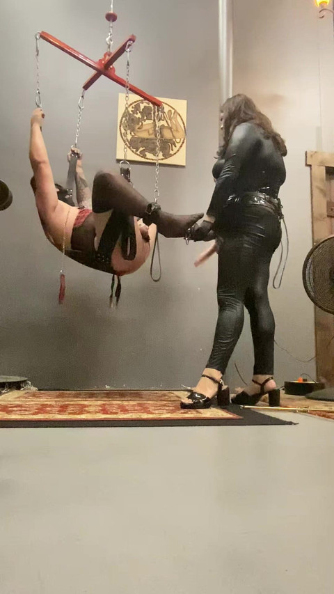 Take a step into one of my REAL Professional Dominatrix sessions, where I strap this sissy slut in My sex swing so good that he cums without permission only 2 mins in.
