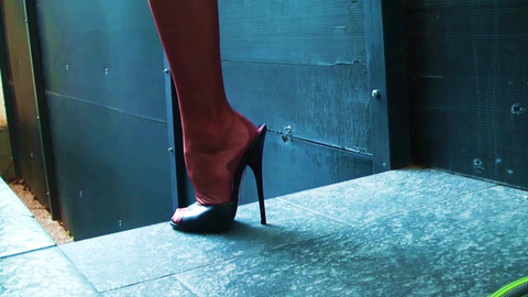Goddess Celine: Потный нейлон на шпилях и мюлях, инструкция по