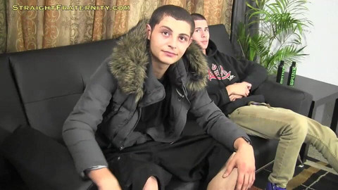 I challenge Kae and Carson to a jack-off race where the first one to cum can shoot on the other guy's face. Both hate getting cum on them, so this one's going to be a sprint! By now my guys know that I'm going to get them naked right away. Kae and Carson strip off their clothes like I ask and sit down together on the couch. I invite them to relax and put their feet up. I fold Kae and Carson's legs together while they stroke their cocks and each other's legs. Then I tell them to sit up and get ready because it's time for a race. What Carson doesn't realize is that Kae has never lost a race! Kae pumps his big dick fast and quickly gets to the finish. He stands up and cums all over Carson's face and chest. Carson nuts right after. Close, but a sticky second.
