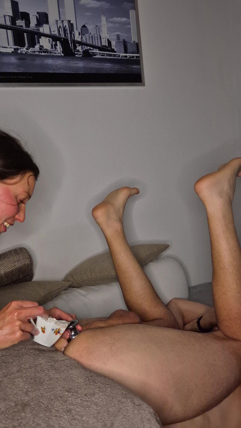 Prostate massage, fucking his ass, pouring milk into his ass