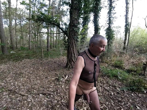partOut in them woods again in my sexy fishnet outfit having a sexy walk round have my nipple suck on a weight hang from my foreskin pierced and a silicon toy on my cock and a collar too .Two part too this video think you no was part 2 is Have fun watching xxxx