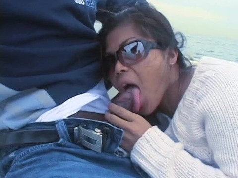 Black dude gets high from a hot blowjob on a boat in the sea