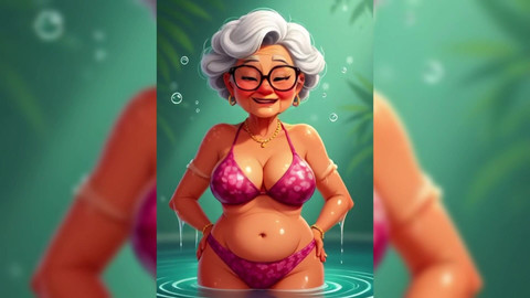 3D style art brings these bikini granny babes to life. Covered in a sticky mess. They are very teasing not letting you see them fully naked but still sexy and curvy in their swimsuits. Generated with AI.