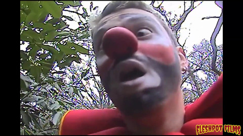 Hans Berlin finds himself at the mercy of Barney, a clown tramp living in the woods who is desperate to tape Hans up and use his arse like a fleshlight! But not before tying him to a tree and blowing balloons in his face and tickling him…