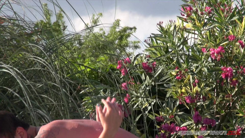 Group of horny and happy people are partying and fucking in tropical island paradise. Mea Melone sucking dick in the garden.