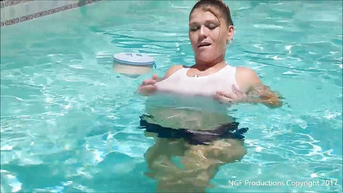 After a hot day filming, Rebel needs to cool down and the pool looks so inviting. In her tank top, daisy duke jean shorts, pantyhose and a sexy pair of wedges, she slips into the water to get herself completely wet. Then she invites you to join her in the pool as she begins to rub herself, exposing those big natural tits and her soaking wet shorts and pantyhose. Jump in and enjoy my nasty slut Rebel as she encourages you to jerk your cock all over her wet boobs, everyone else does!!
