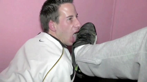 This sexy twink is total slave submissed to sneaker feet and foot for a dominant top guy