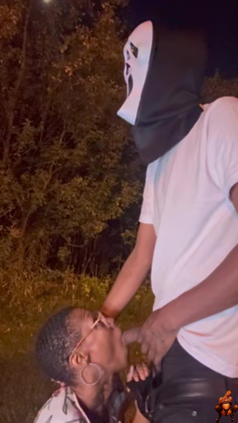 On my way home I heard I strange noise! To my surprise Ghost Face wants to stuff my mouth with his BBC!