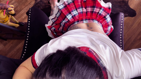 I sit down, very well-behaved, text on my lap... But suddenly it gets hotter than roofed. My outfit is probably too short, my look too cheeky – and then the 'tutoring of a special kind' begins. Fingering, licking, doggy... I'm just screaming "More!" You want to see the whole video? Come in