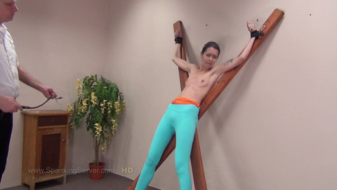 Sissy's breasts are whipped in prison.