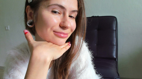 My incredibly hands under my chin. Sexy face and sensual big lips, and ofcourse cute hands with soft fingers. I'm look at you, smiling and teasing you with my beauty hands. Come closer and look at them. I know this is make you hard so fast!
