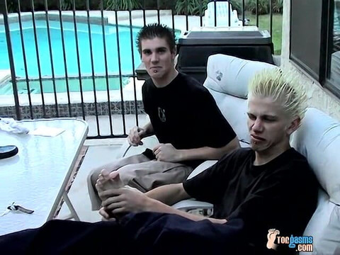 Evan and Ian are the kinds of boys who are up for all kinds of fun. We were all hanging out and somehow got into the kitchen after a little show and tell outside. The boys wash each others feet, then get messy in some food fun, licking each others feet and toes! It's amazing how much fun you can have with a couple of straight guys.