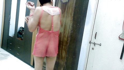 Sexy sissy crossdresser femboy Sweet Lollipop in a sexy sheer-lace pink-white designer babydoll. Possing, showing asshole, removing lingerie, and getting nude.