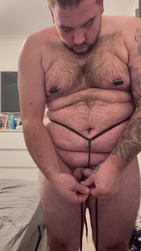 In this video I fold my cock in half and tie it preventing an erection I also use a crotch rope to tie my cock and balls to my nipple clamps