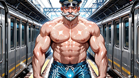 Slideshow style video. Featuring AI generated characters. Handsome guys with nice muscles. Teasing in their shorts refusing to show their full nude bodies.